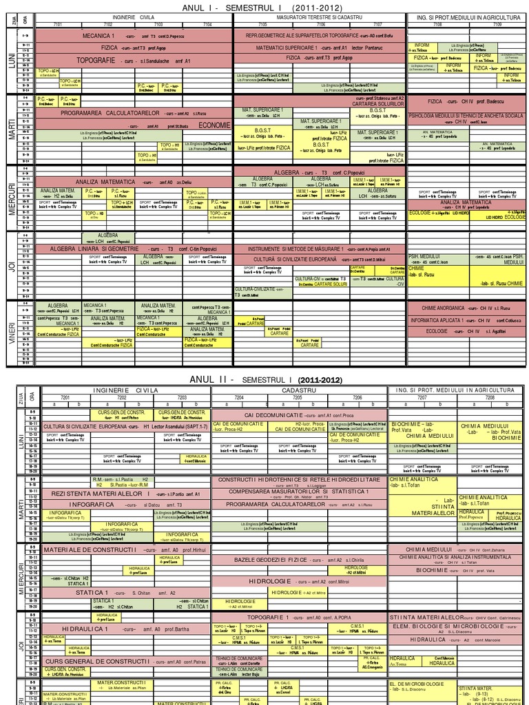 Facultatea De Inginerie Chimica Si Protectia Mediului Iasi Orar